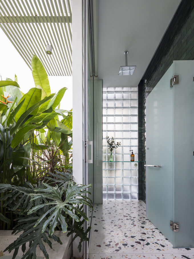 Để khắc phục nhược điểm phòng vệ sinh có không gian nhỏ, gia chủ có thể bố trí nhiều ô thông gió, tăng mảng xanh, lắp đặt hệ cửa trượt. Ở những nhà phố có diện tích nhỏ, các gia chủ