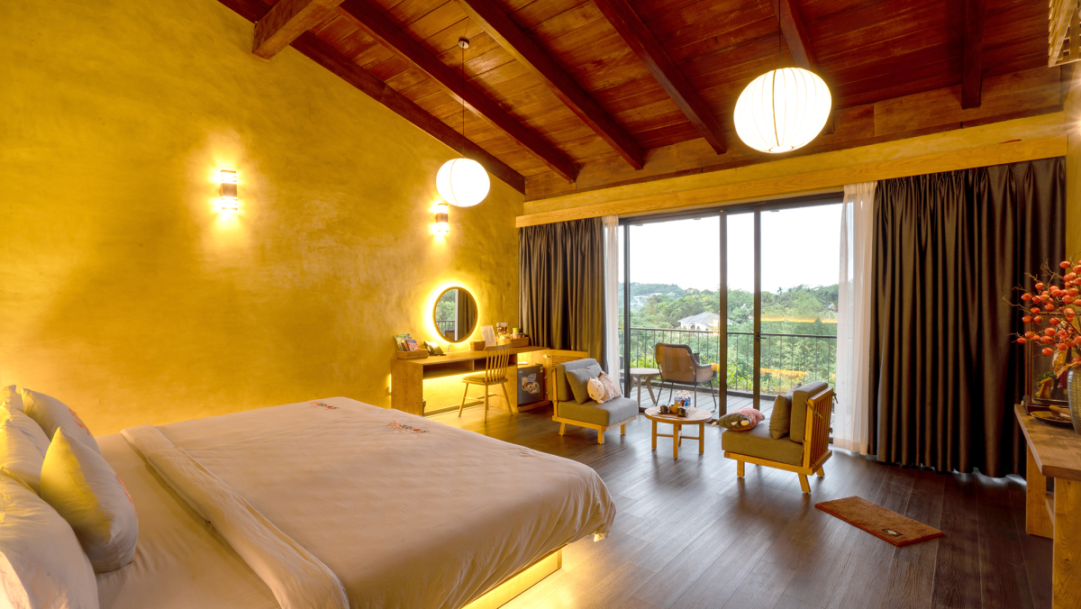 LÂM ĐỒNG- Căn biệt thự sử dụng vật liệu chủ đạo là gỗ thông, ốp đá rối ở khối đế nhằm tạo sự hài hoà với cảnh quan xung quanh. Căn biệt thự 2 tầng và một áp mái, được xây