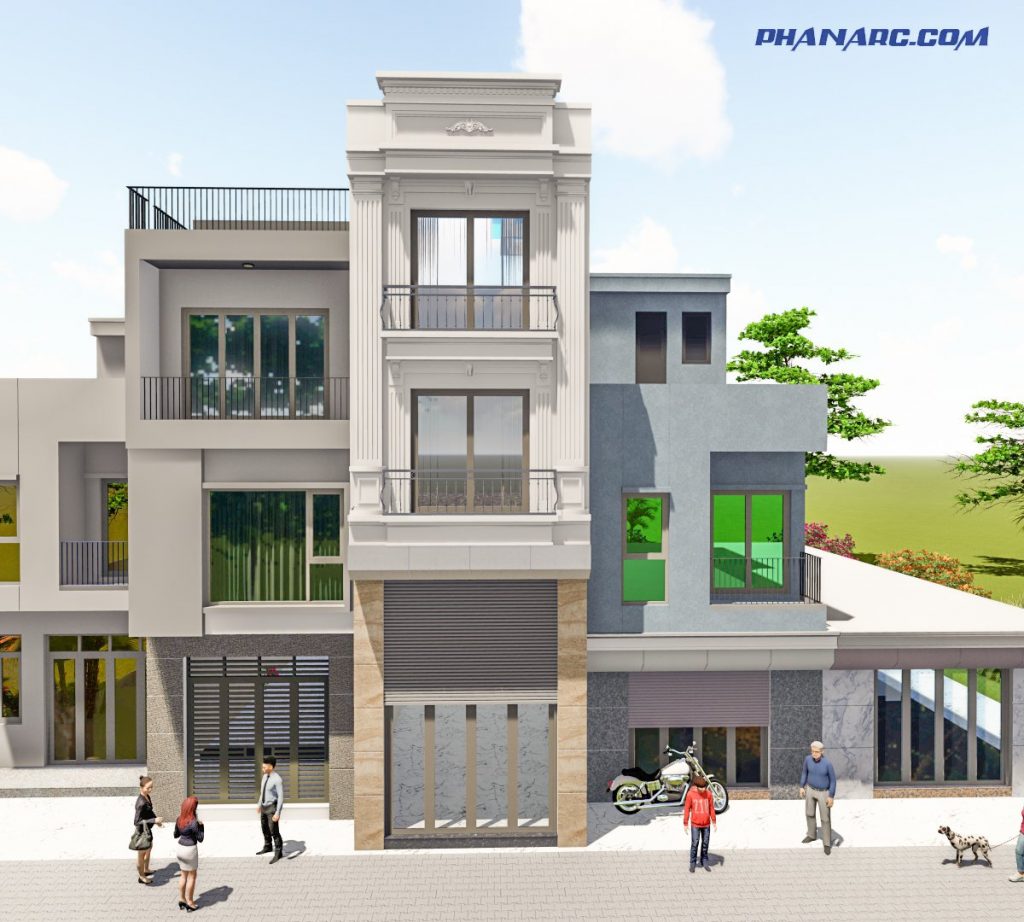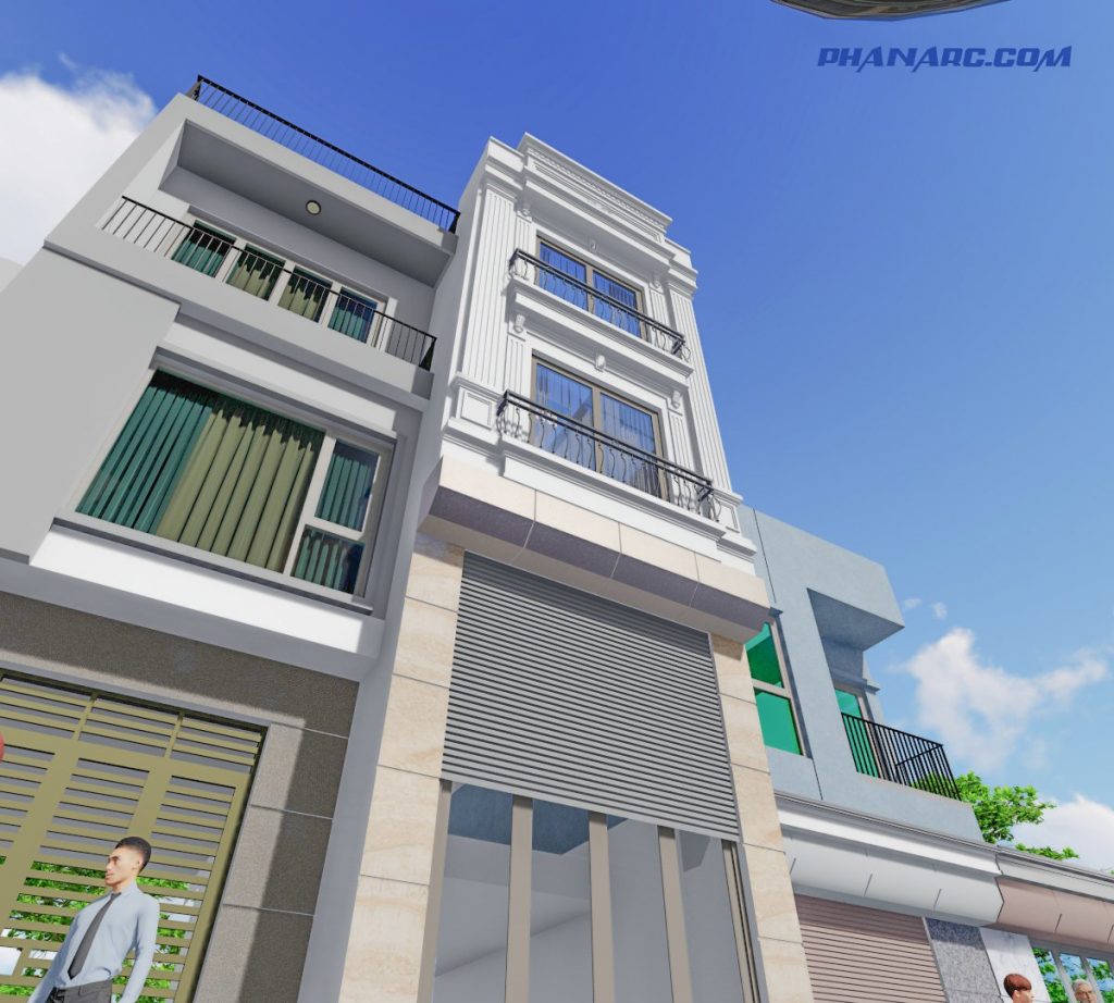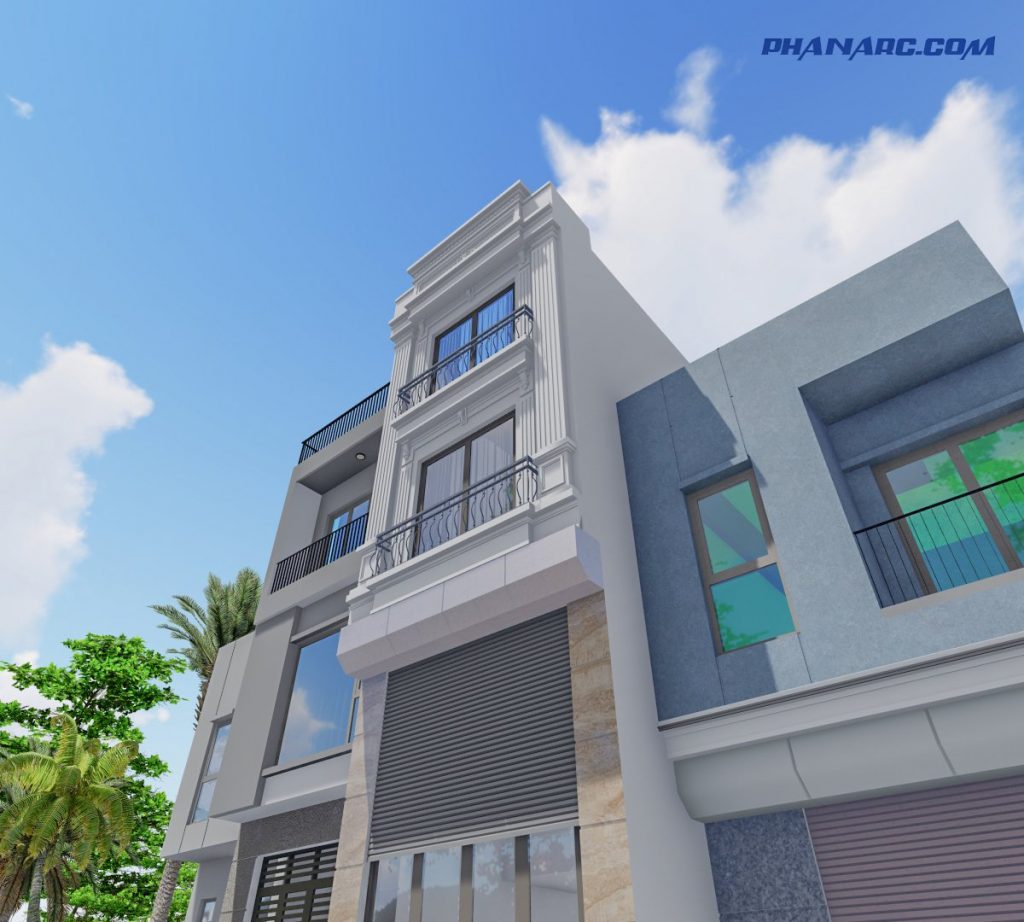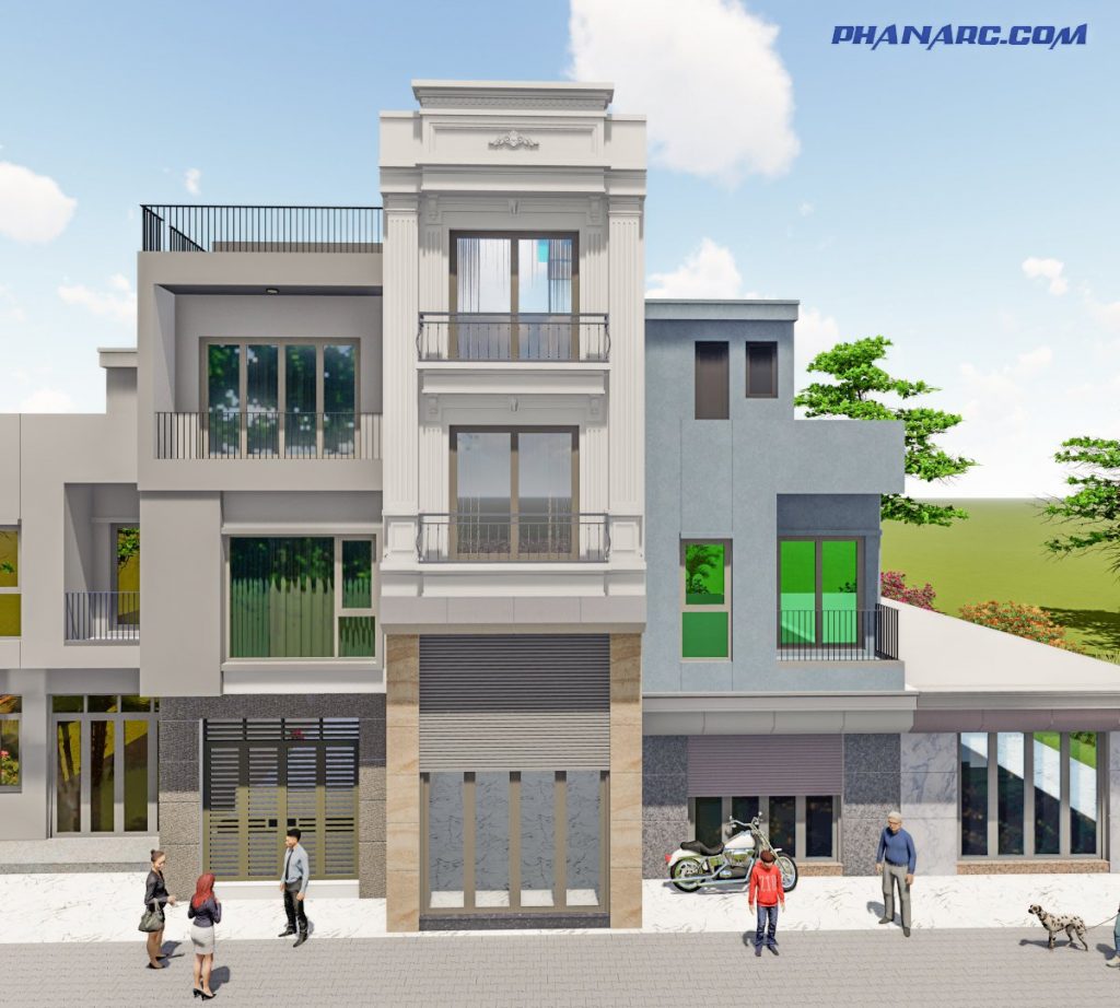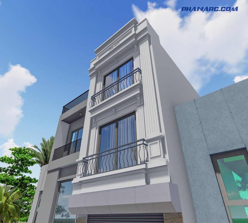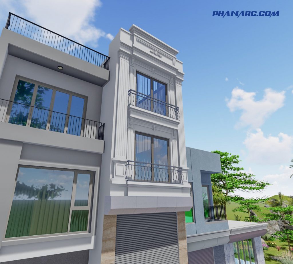 Căn nhà có thiết kế ban công đẹp và thẩm mỹ mang phong cách tân cổ điển kiến trúc Pháp và các KTS của PHAN ARC vẫn không quên tích hợp không gian xanh cho ngôi nhà, mỹ quang ngôi nhà dần trở xanh đẹp mỹ quang hơn ở khu vực tầng sân thượng hay gọi là tầng tum , nhìn tổng thể ngôi nhà 3 tầng 4m x 9m tuy đơn giản nhưng lại mang một vẻ thanh lịch không thể trộn lẫn