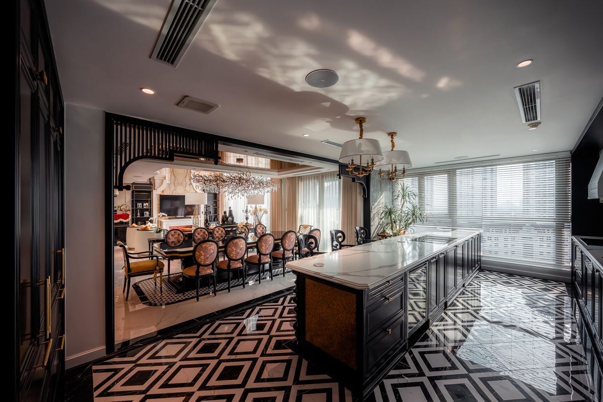 TP HCM- Các chi tiết đèn trần, thảm, đảo bếp được lấy ý tưởng từ lớp vỏ lồi lõm của mặt trăng, kết hợp với nội thất liền tường thiết kế riêng. Căn hộ có diện tích 122 m2, thuộc một