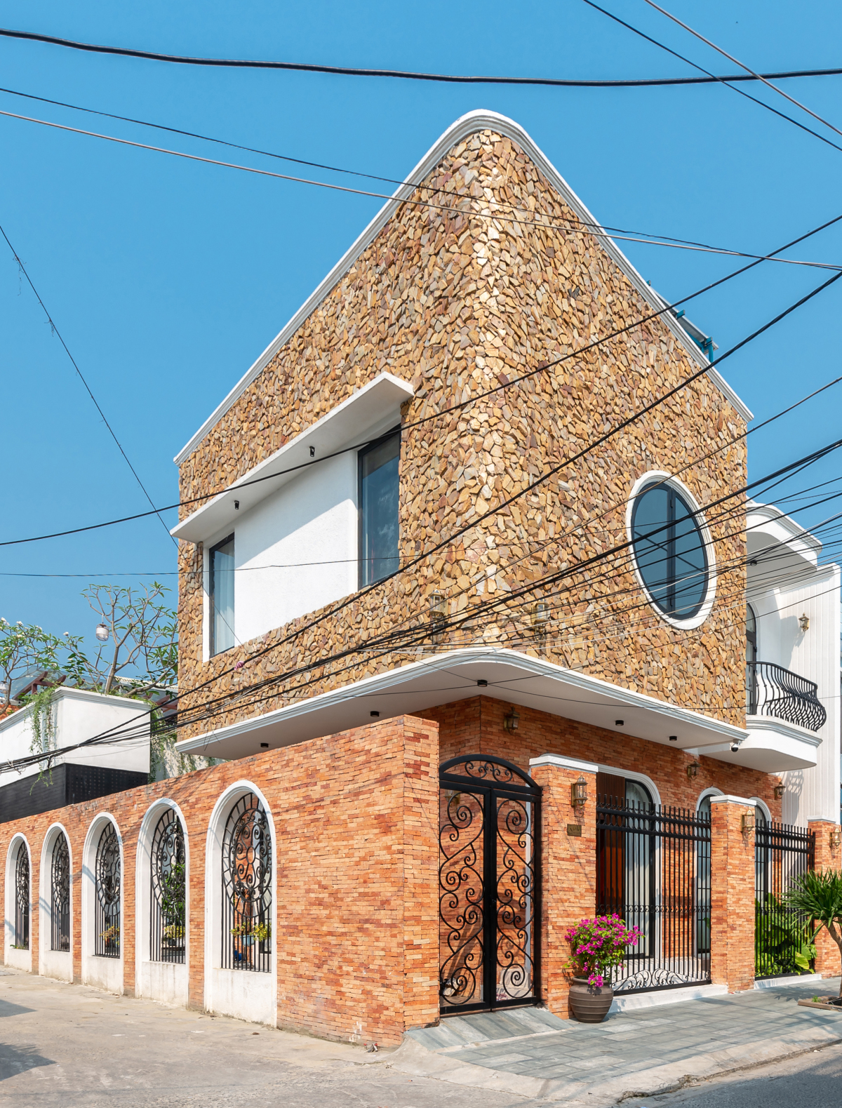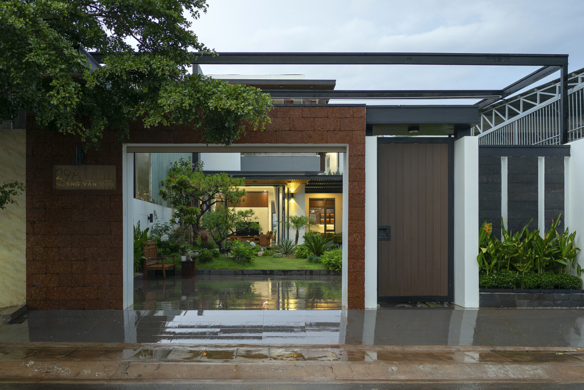 ĐÀ NẴNG- Toàn bộ mặt đứng ngôi nhà được ốp đá, gạch nung, kết hợp bố trí khoảng mở để trồng cây xanh, giúp thích nghi tốt với nắng nóng miền Trung. Ngôi nhà phố có quy mô 2 tầng, được