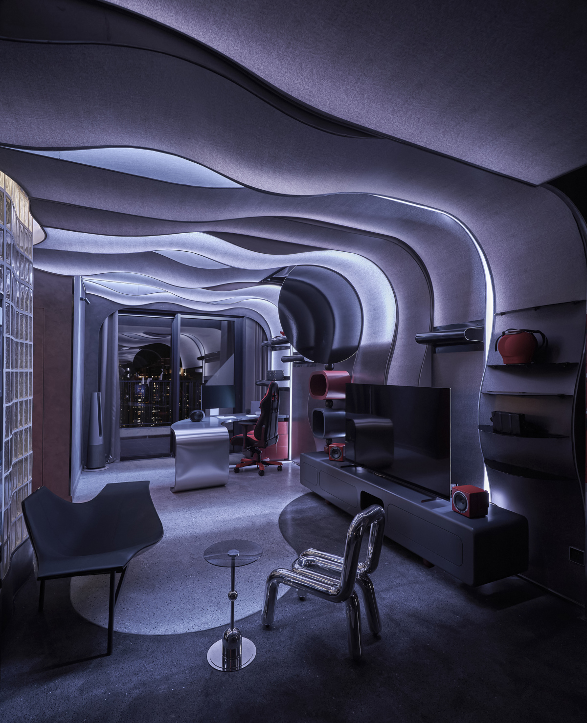 TP HCM- Thiết kế ưu tiên đường cong, sử dụng vật liệu có độ bóng cùng các lớp ánh sáng ấn tượng, nhằm làm nổi bật ý tưởng không gian vũ trụ. Căn hộ có diện tích 86 m2, nằm tại