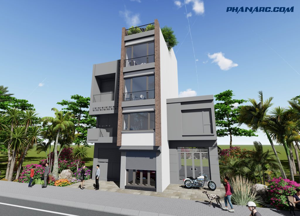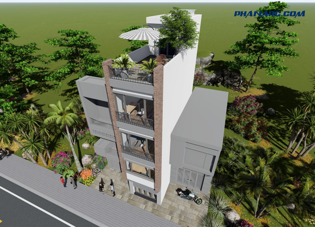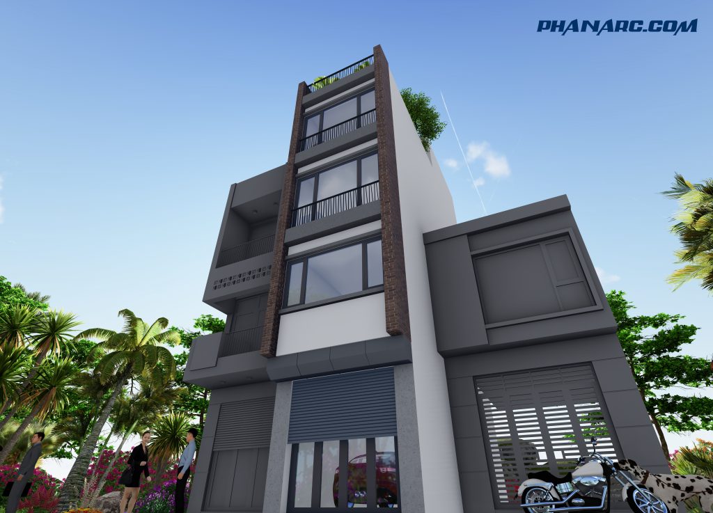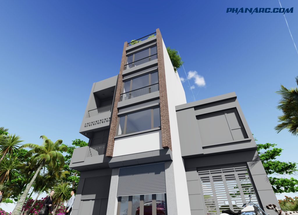 Lựa chọn phong cách kiến trúc hiện đại phù hợp với sự trẻ trung và tươi vui của gia chủ là vợ chồng trẻ. KTS PHANARC đã thiết kế mẫu nhà tương đối đơn giản từ sự kết hợp giữa kính và thép cùng điểm nhấn là gạch thẻ tạo mặt tiền tối giản cho ngôi nhà.